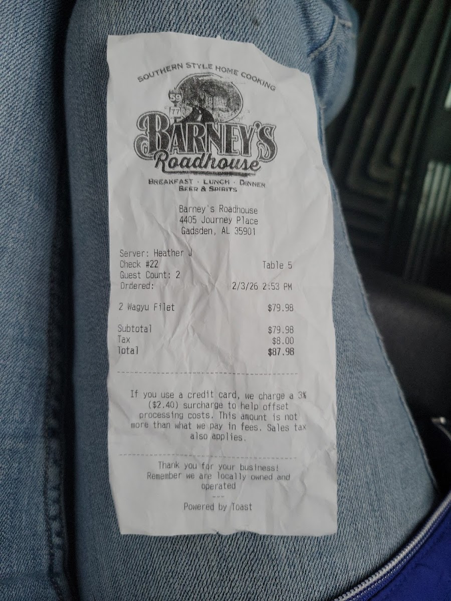 Strong service plays a key role in the overall reputation of Barney's Roadhouse. Staff members are often described as attentive without being intrusive. Orders are handled with care, and guests feel genuinely welcomed rather than processed.