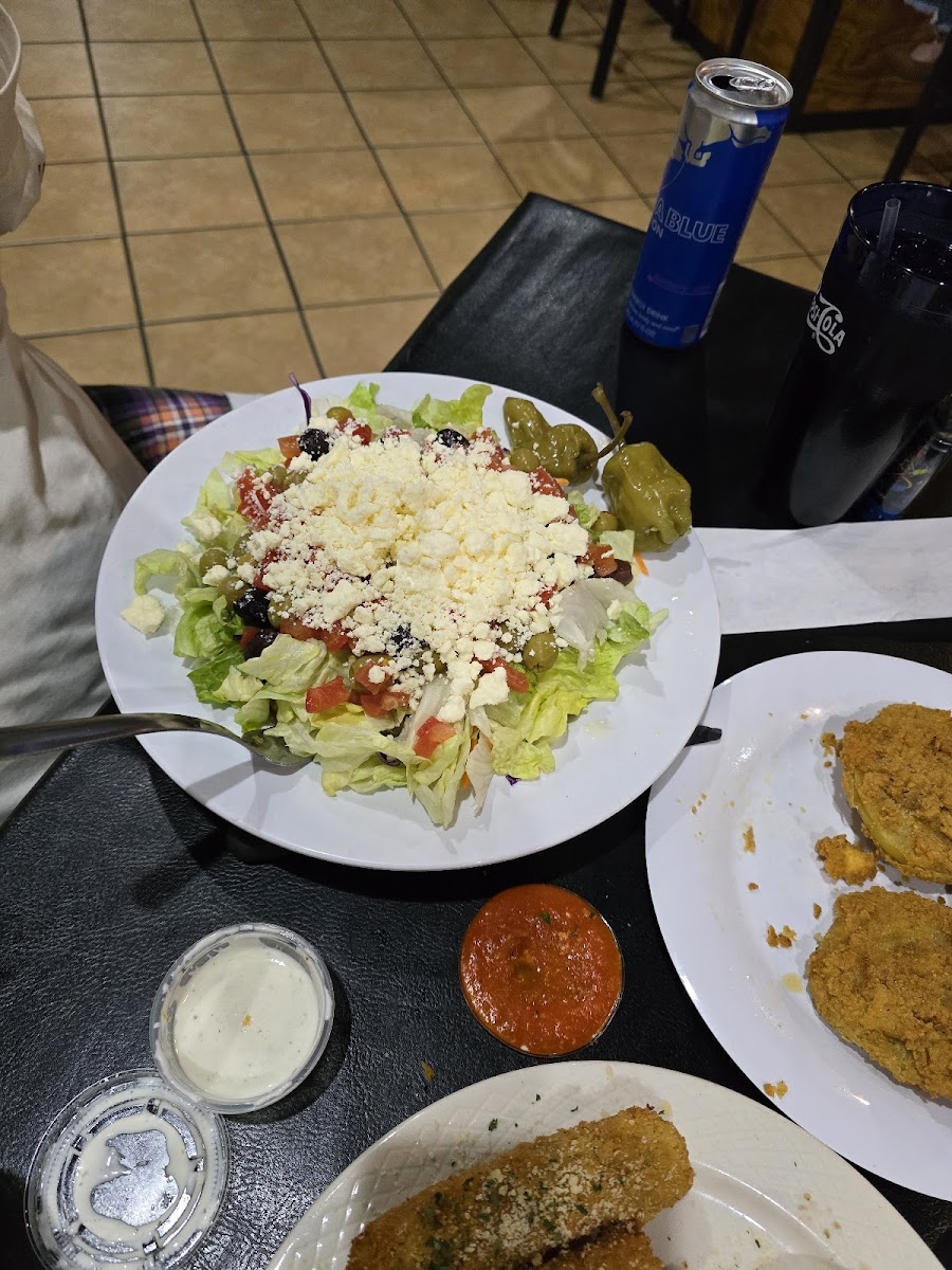 The Greek salad offers a lighter option, bringing freshness and balance to the table. It pairs well with richer main courses and appeals to guests looking for something crisp and refreshing.
